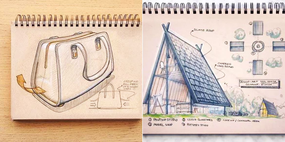 每個設(shè)計師都有一個自己的手繪本,今天咱們就來看看別人家的手繪本是什么樣的。