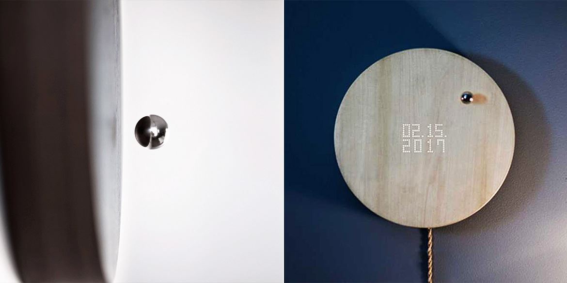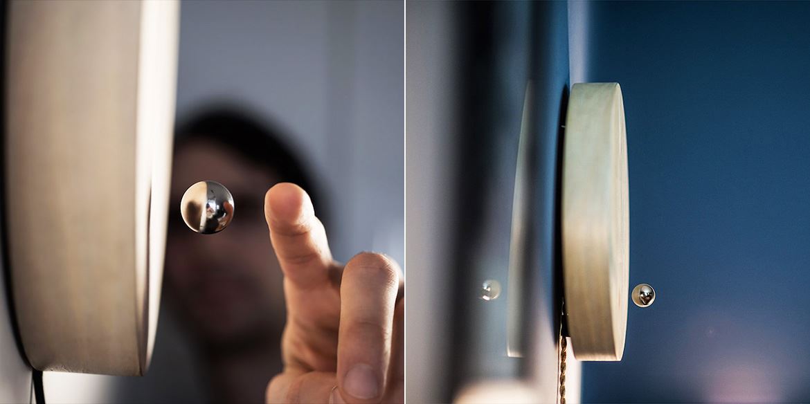 “Story”外型十分簡約,只有一塊高 42.5 毫米、直徑 268 毫米的胡桃木或白蠟?zāi)局瞥傻膱A形鐘面,以及一粒直徑 16 毫米的懸浮金屬球體。沒有任何時(shí)間刻度,也沒有指針,但懸浮的金屬球體會以運(yùn)轉(zhuǎn)的形式來標(biāo)記時(shí)間的軌跡,令人不禁聯(lián)想到宇宙中圍繞太陽公轉(zhuǎn)的星球。